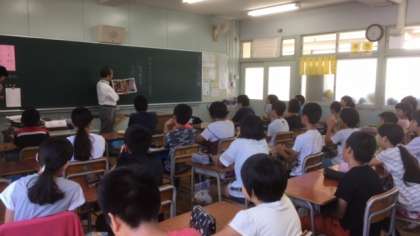 一学期最後の読み聞かせがありました。芥川龍之介の名作「蜘蛛の糸」を読んでいただきました。子どもたちは、集中してお話を聞いていました。