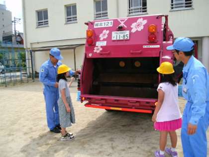 ゴミをすべて出すときの車の様子を特別に見せてもらいました。