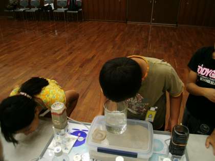 館内では、山から私たちの家に到着するまでの水の流れのビデオを見ました。その後、実際に汚れた水がとてもきれいになる実験を、班で協力して行うことができました。また、質問コーナーがあったので、子どもたちは疑問に思っていることを聞いていました。
