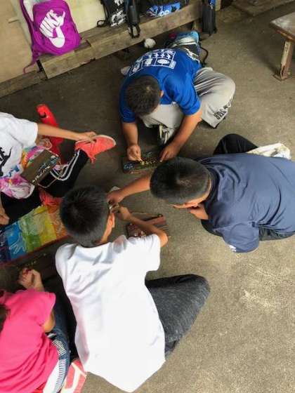磨いた後は、金具をつけて絵などを描いて完成です。