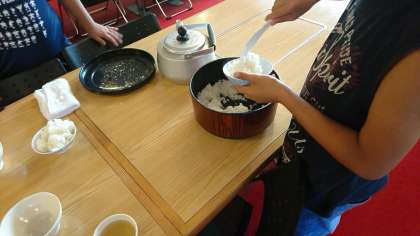 宿舎での食事も3回目。手際よく準備ができるようになってきました。