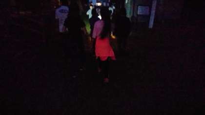 夕食の後は、ナイトハイク。始めは空も明るかったのですが、次第に辺りは闇に包まれていきます・・・。少し怖いな、と感じながらも夜の時間に自然を満喫。これも、林間学舎ならではの貴重な体験でした。
