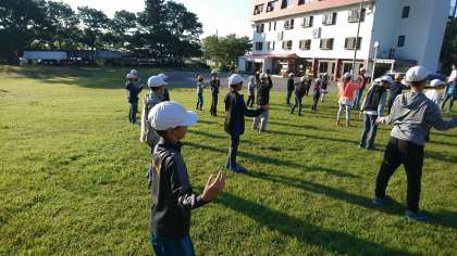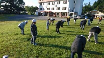 みんなで体操をしています。しっかり体を動かして、最終日も元気に活動します。