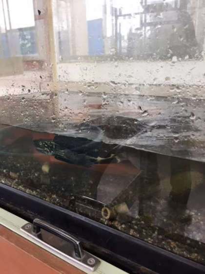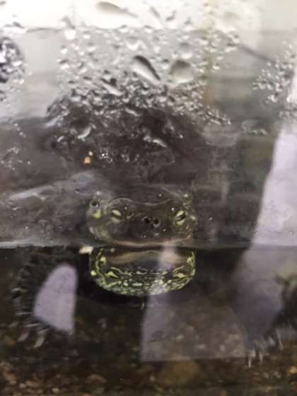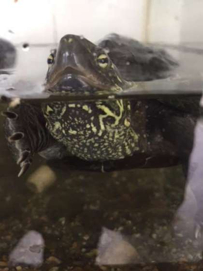 まだまだ暑い日が続いていますが、城亀くんはとても元気です。今日は、水槽のお水を換えました。とても嬉しそうに泳いでいます。