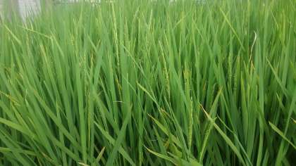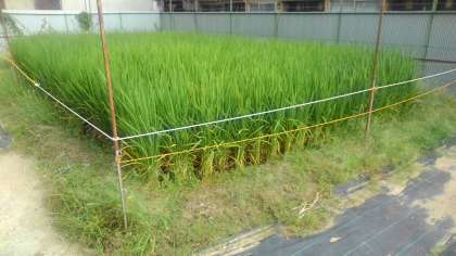 田んぼの稲が大きく育ってきました。鳥などに食べられないように、これから網を張ったり案山子を作ったりしていきます。