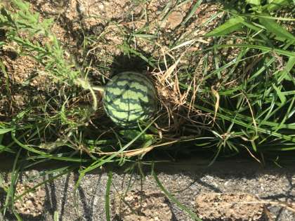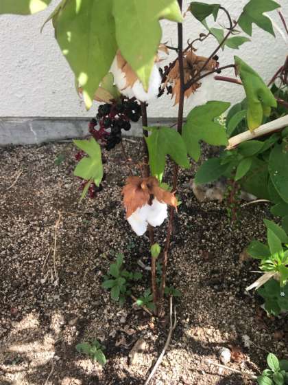 スイカやカボチャも実が少しずつ大きくなりました。綿花も咲いて実を開かせています。ひまわりも元気いっぱい花を咲かせて、子どもたちが元気に登校してくるの待ってくれています。