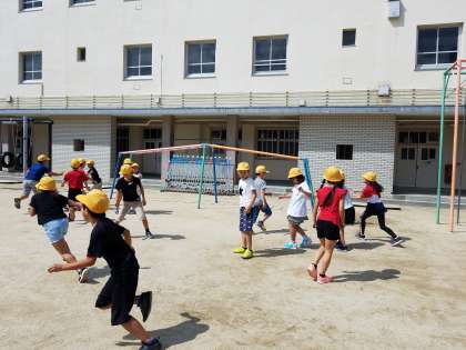 久しぶりのいいお天気、休み時間にクラスみんなで外遊びをしました。