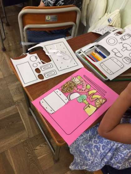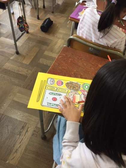 今週金曜日は、キッズプラザに遠足に行きます。本日しおりを渡していますのでご確認ください。図工の学習でも、遠足に持って行きたいお弁当を考えて作りました。みんなそれぞれ「にこにこ弁当」や、「きらきら弁当」など、名前を付けていました。