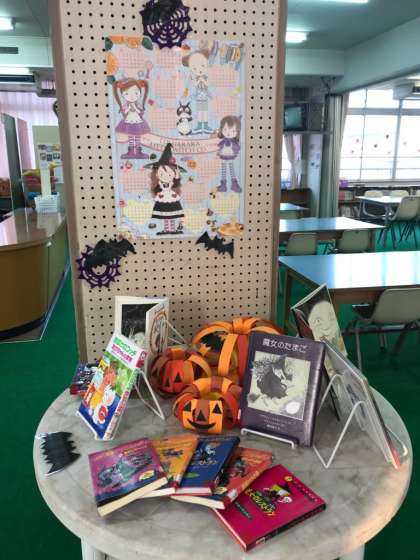 部屋の中は、ハロウィンにちなんで、お化けの本も集めています。