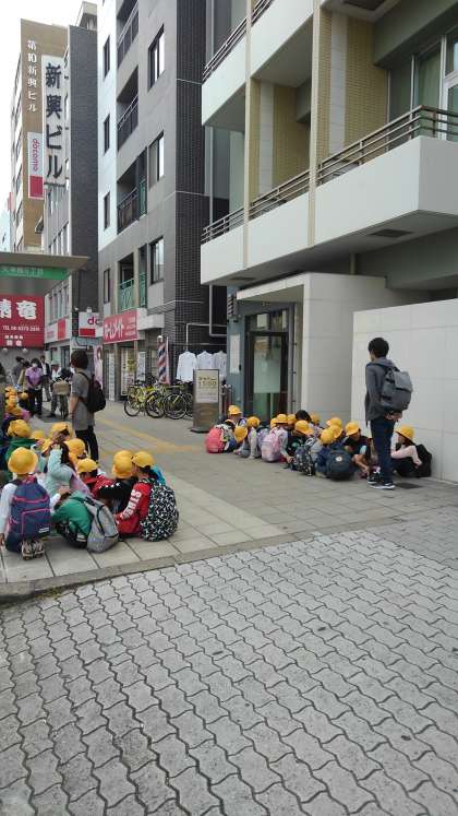 帰りのバスが来るまで静かに待ちます。たくさん活動しましたが、子ども達はまだまだ元気です。