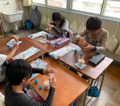 今日の理科では、「水も空気と同じようにおしちぢめることができるか」どうか実験しました。