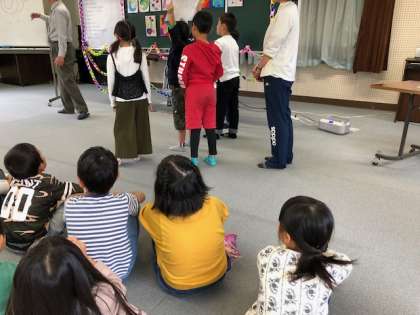 子ども達は手話での自己紹介に挑戦したり、聞きたいことをを紙に書いて伝えようとしたりしました。講師の方からは、「積極的に学ぼうとする姿が素敵ですね」とほめていただきました。