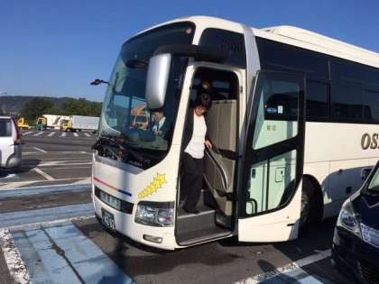 みんな外に出て、体操をします。少し身体も動かして、もう一度バスに乗ります!