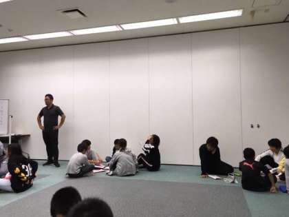 学習のふり返りです。活動班ごとに話し合います。