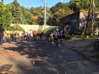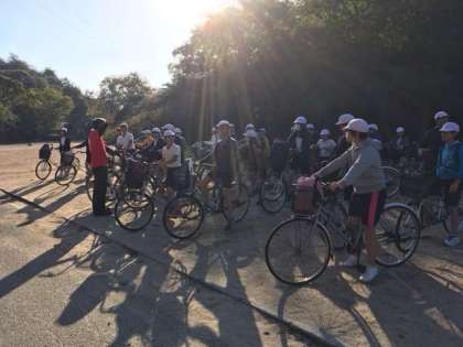 今から自転車に乗って、全体活動です。島内を1周します。