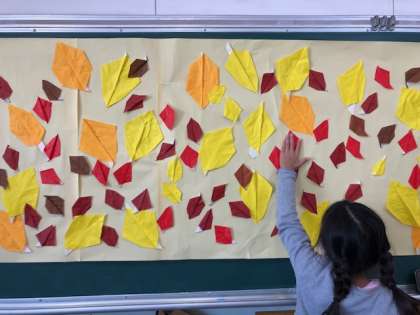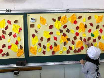 玄関掲示の柿に続き、落ち葉を作りました。