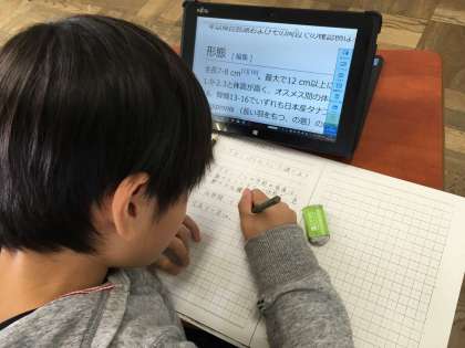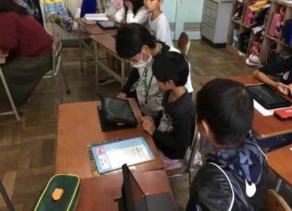 ICTサポーターの方に来ていただき、分からないことを質問しながら取り組みました。