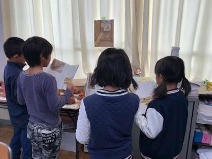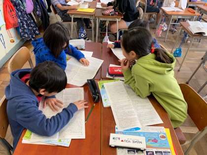 今日は、三場面と四・五場面をグループでどんな風に読むかを考えて、音読の修行の旅に出ました。