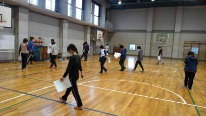 上手に走るために、普段の姿勢や歩くときの足の出し方などを、自分で見直すことをめあてとした準備運動でした。