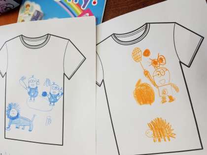 「What 〇〇 do you like?」の言い方を使って、隣同士で好きな色やスポーツ、キャラクターなどを聞き合い、相手の好きなものを紹介するという活動を行いました。