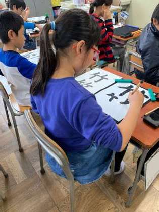 今日の書写の時間は、「竹笛」という字を上下の組み立て方に気を付けながら書きました。
