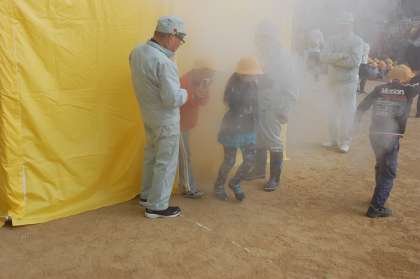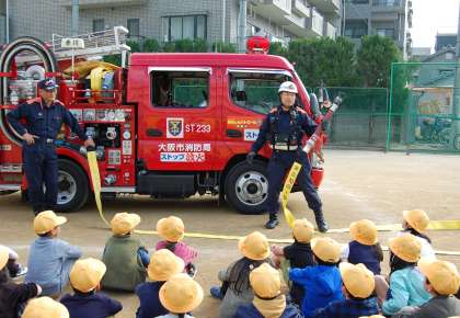 低学年は、煙体験と消防車の見学をさせていただきました。