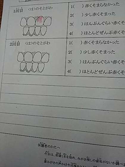両学年とも、ワークシートを家に持って帰っています。一緒に見ていただき、よい歯みがきの習慣が身につくように、声かけをお願いします。