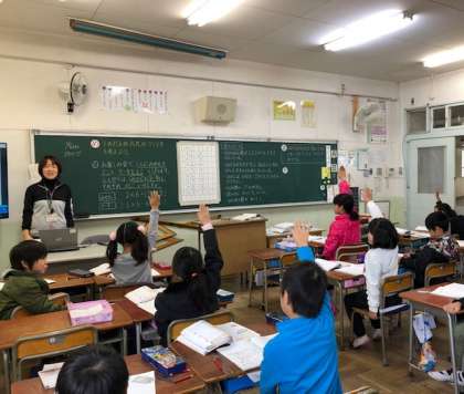 授業中には、九九クイズをすると子どもたちは
