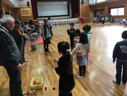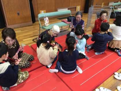 地域の方に先生になっていただき、昔の遊びを教えてもらいました。