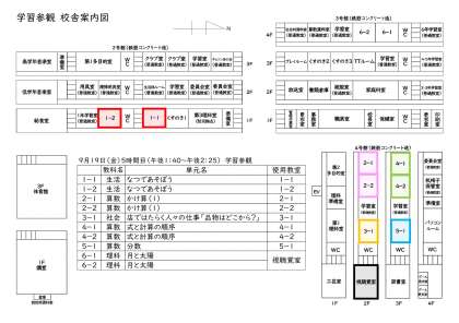 明日の学習参観について、以下のとおりご案内いたします。詳細は添付文書をご確認ください。