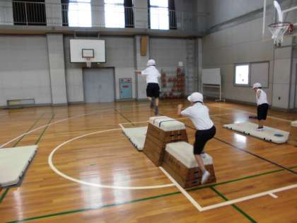 とび箱をつなげている場や階段状になっている場など、自分たちで場を選びながら体を動かすことができました。