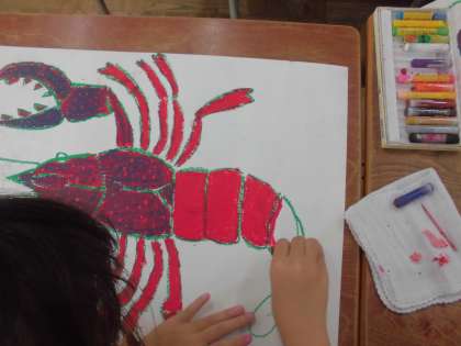 2年生の図画工作科では、ザリガニの絵を描いています。