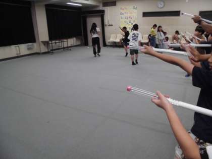 理科の実験で空気でっぽうをしました。つつを勢いよく押したり、スポンジの量を変えたりしてとばす工夫をしました。これから、とじこめた空気にはどのような性質があるかを学んでいきます。