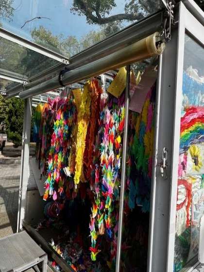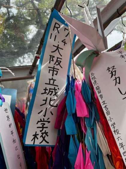 児童代表が平和への誓いを述べ、その後に城北小学校のみんなの思いが込められた「千羽鶴」を捧げました。