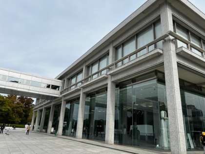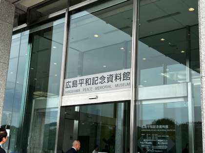 平和記念公園にて昼食にお弁当を食べ、これから広島平和記念資料館の見学です。