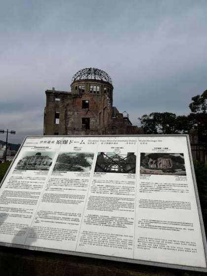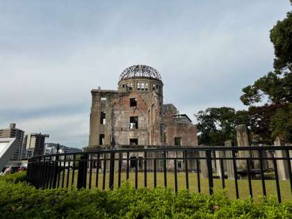 平和記念公園での平和学習の締めくくりに原爆ドームを見学しました。