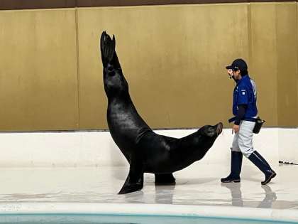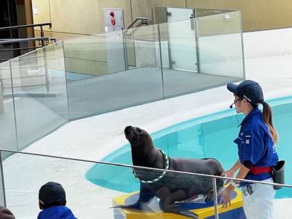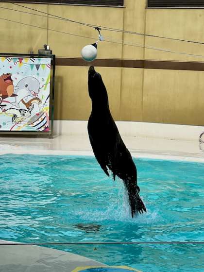 アシカの輪投げは城北小学校の6年生も挑戦しました??