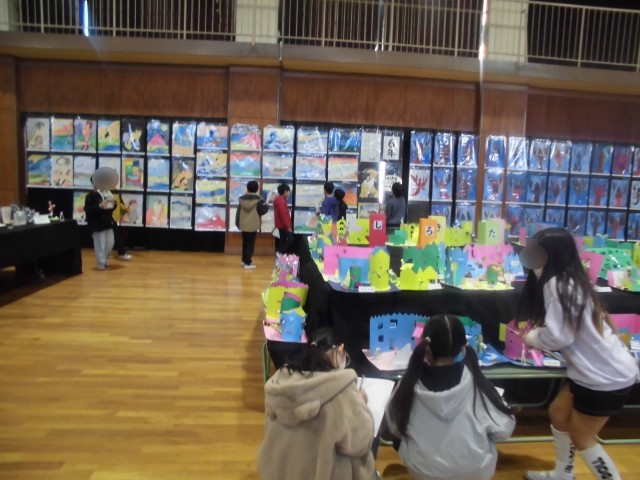 講堂で作品展の鑑賞をしました。他の学年の友だちや兄弟の作品を見つけたり、作品のよいところをカードに書いたりしていました。次は6年生のときに作品展が行われます。最高学年として素敵な作品を作り上げるのが楽しみです。