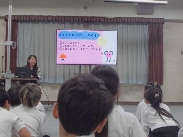身長体重測定の前に、養護教諭の安部先生から2つおはなしがありました。
