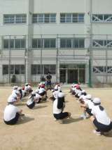 運動場での練習が始まっています。 スタートの位置、二人とびの位置、大縄とびの位置...