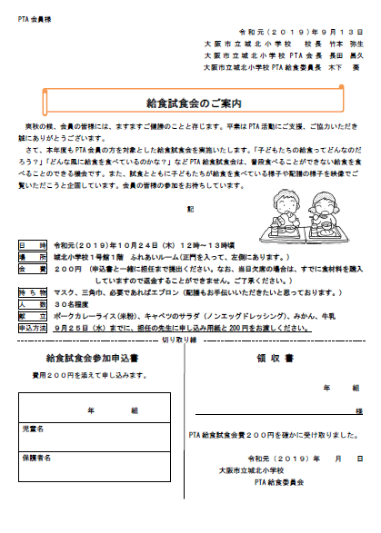 PTA役員・実行委員のご家庭に、本日配付しています。 平素は、PTA活動の...