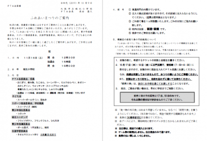 ふれあいまつり中止、ならびに本年度PTA会費についてのお知らせ
