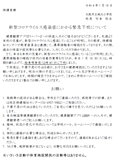 新型コロナウイルス感染症にかかる緊急下校について