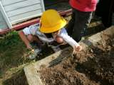 最初に草抜きをしました。畑がきれいになったので、次は畝を作りました。みんなで協力...
