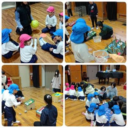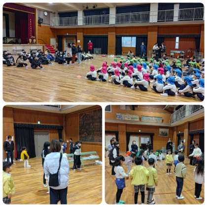 来年度小学一年生になる園児たちに来てもらい、5年生と遊びやゲームで交流しました。集まったときは少し緊張気味の子もいましたが、5年生の丁寧な説明や優しい声掛けで、とっても楽しい時間を過ごせたようです。みんなの楽しそうな声が、講堂いっぱいに響いていました。