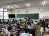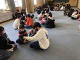 英語の絵本にチャレンジしました。たてわり班が同じ2年生に読み聞かせを行い、5年生...