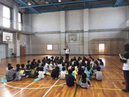 今日は、1年生に城北小学校のいろいろな教室を案内しました。