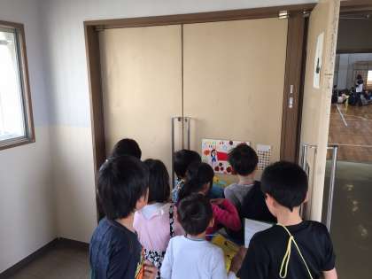各ポイントで「ここは保健室です。しんどくなったりケガをしたりしたら行くところです。」等と上手に説明をしてもらい、学校にあるたくさんのお部屋を知ることができました。