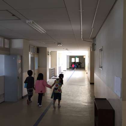2年生のお兄さんお姉さん達に、仲良く手をつないで学校を案内してもらいました。