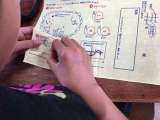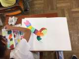 絵具を2色混ぜてきれいな色を作り、カラフルなヘビをかきました。 ヘビの顔の向きを...